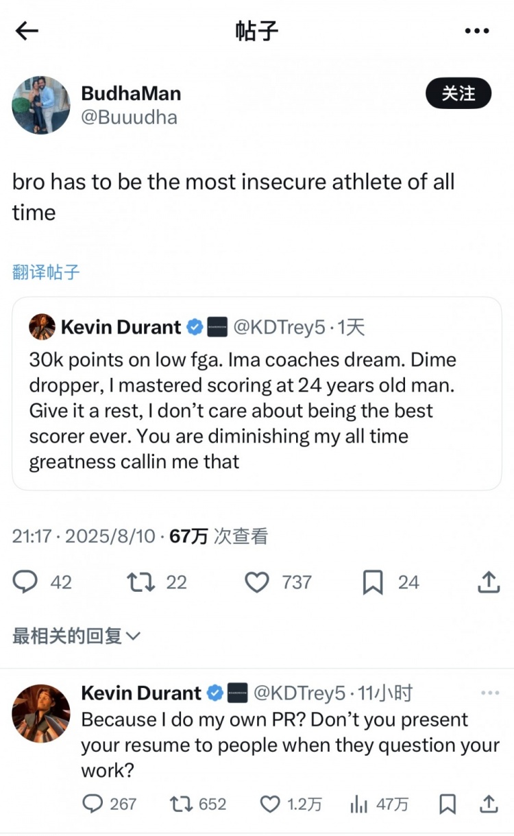 杜兰特:“因为我自己做?当别人质疑你的工作时,你不向他们展示您的简历吗?”